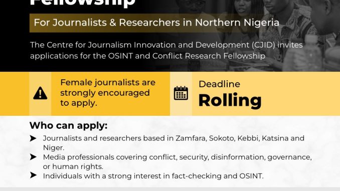 DEADLINE: MARCH 9, 2026 — The Centre for Journalism Innovation and Development (CJID) invites Nigerian journalists to submit story pitches for the Methane Emissions Reduction Reporting Initiative. Through its Natural Resource and Extractive Programme (NAREP), [...]