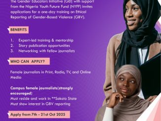 DEADLINE: OCTOBER 21, 2025 — Female journalists based in Sokoto State who are passionate about ethical Gender-Based Violence (GBV) reporting can apply for this training. The Gender Educators Initiative (GEI), with support from the Nigeria […]