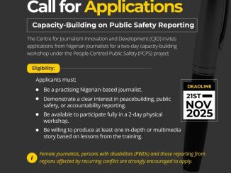 DEADLINE: NOVEMBER 21, 2025 — The Centre for Journalism Innovation and Development (CJID) invites applications from Nigerian journalists for a two-day capacity-building workshop on public safety reporting. Through this workshop under the People-Centred Public Safety […]