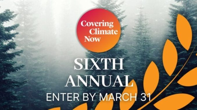 DEADLINE: MARCH 31, 2026 — Journalists can submit entries for the 2026 Covering Climate Now Journalism Awards for excellent reporting on the climate story.