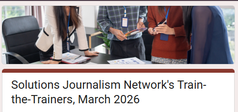 DEADLINE: MARCH 1, 2026 — The Solutions Journalism Network’s train-the-trainers programme seeks pitches from journalism trainers, editors, reporters and journalism school educators.