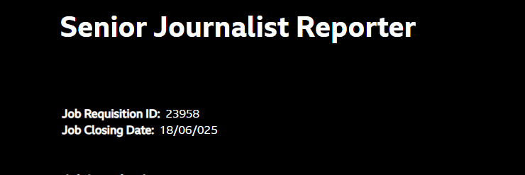 DEADLINE: JUNE 18, 2025 — BBC News Africa wants a Senior Journalist Reporter to join its team in Nairobi, Kenya.