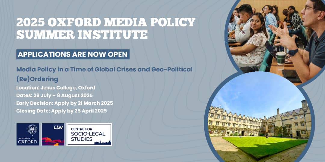 DEADLINE: APRIL 25, 2025 — The 2025 Oxford Media Policy Summer Institute is currently open for applications.