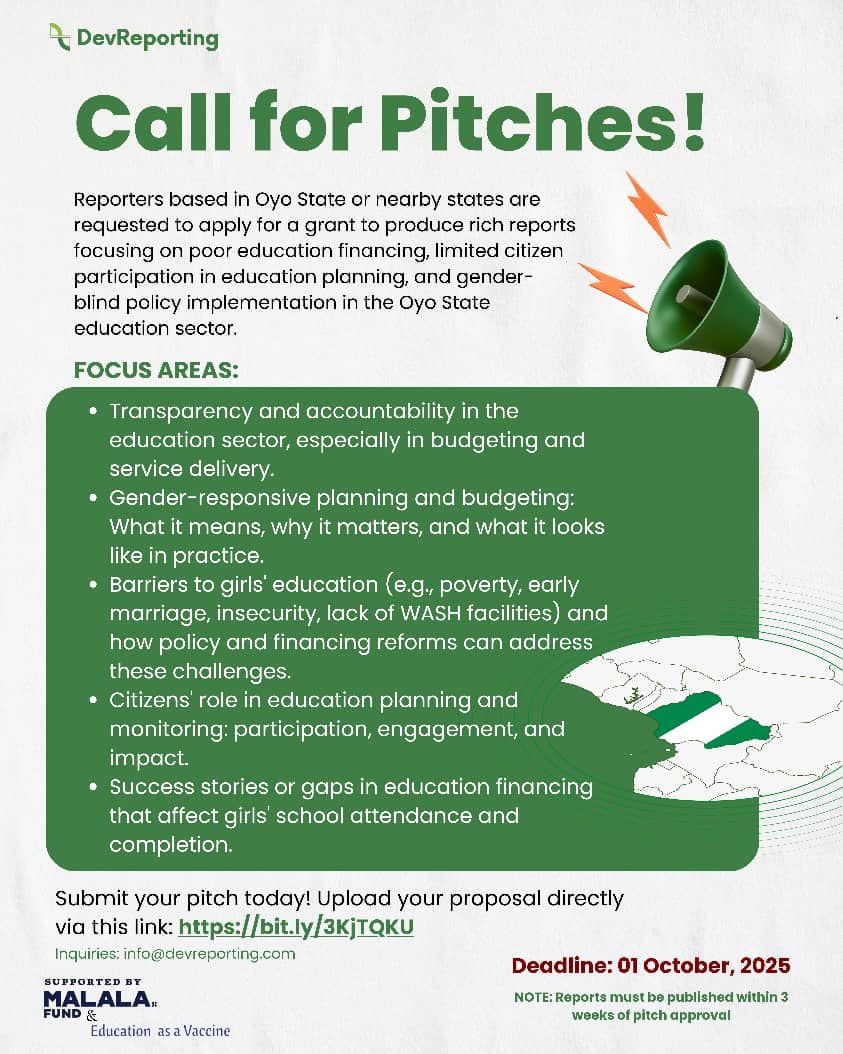 DEADLINE: OCTOBER 1, 2025 — Journalists can submit story pitches on poor education financing, limited citizen participation in education planning…