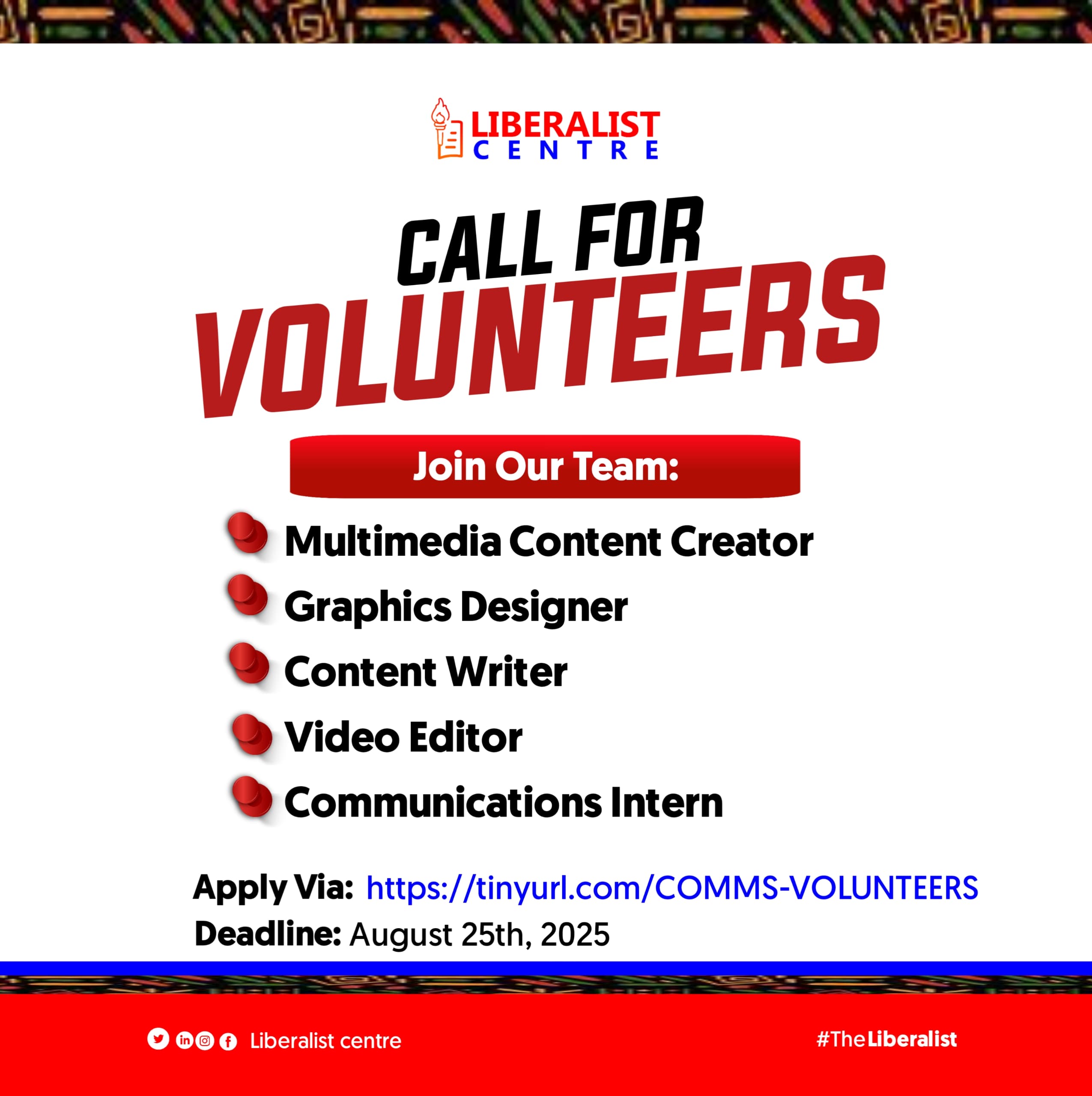 DEADLINE: AUGUST 25, 2025 — The Liberalist Centre is seeking passionate and creative individuals to join its communications team as…