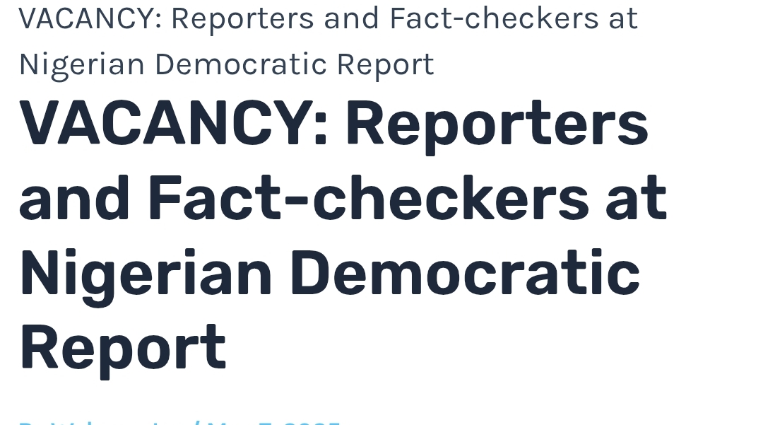 DEADLINE: MAY 14, 2025 — The Nigeria Democratic Report (NDR) invites applications for the positions of reporters and fact-checkers. NDR…