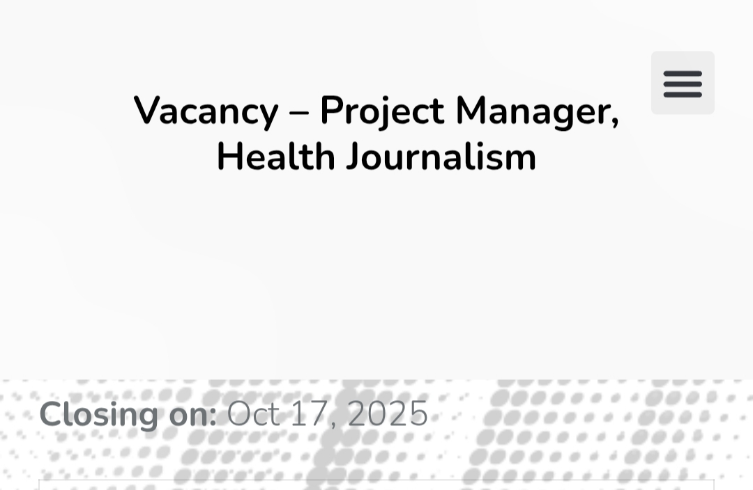 DEADLINE: OCTOBER 17, 2025 — The Centre for Journalism Innovation and Development (CJID) is hiring a Project Manager (Health Journalism).