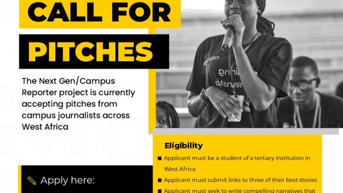 DEADLINE: ROLLING — Campus journalists across West Africa can submit pitches for the Centre for Journalism Innovation and Development (CJID)’s Next Gen/Campus Reporter project.