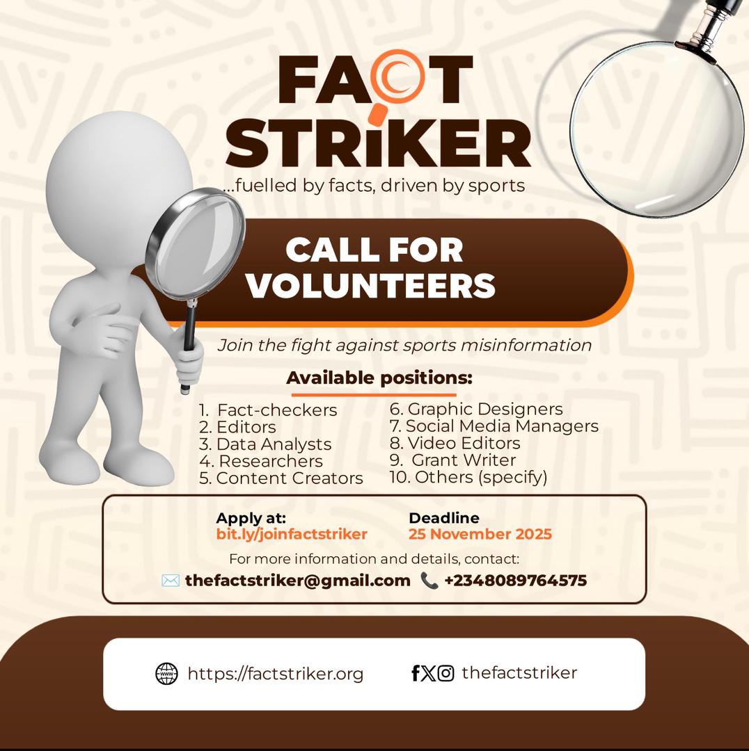 DEADLINE: NOVEMBER 25, 2024 — Fact Striker, a pioneering sports fact-checking platform, seeks volunteers to join its fight against sports misinformation.