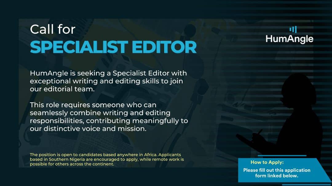 DEADLINE: JUNE 8, 2025 — HumAngle is hiring a Specialist Editor with exceptional writing and editing skills.