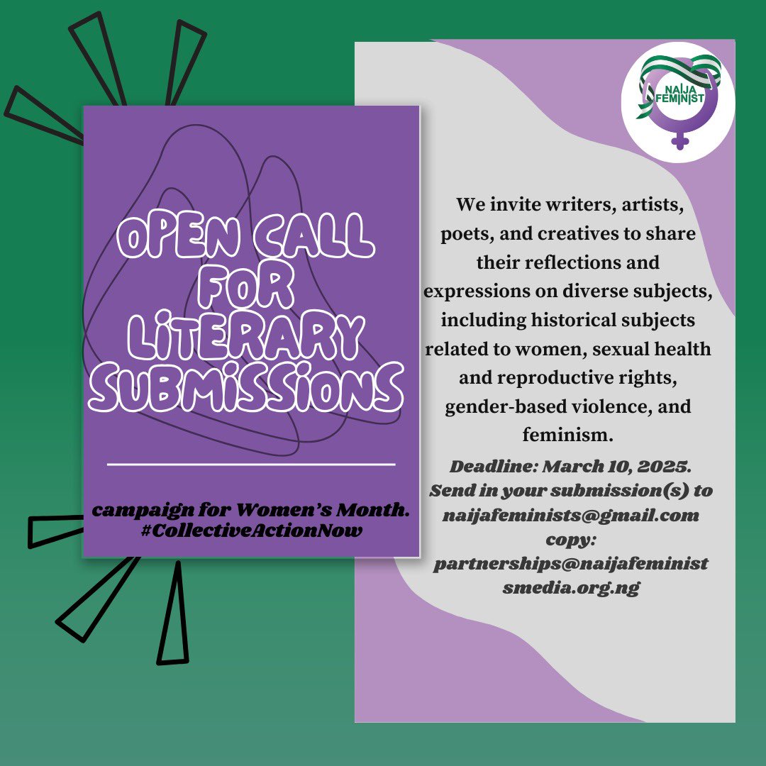 DEADLINE: MARCH 10, 2025 — Naija Feminists Media (NFM) seeks literary submissions for #CollectiveActionNow campaign, aimed at amplifying critical issues related to women’s rights and gender equality.
