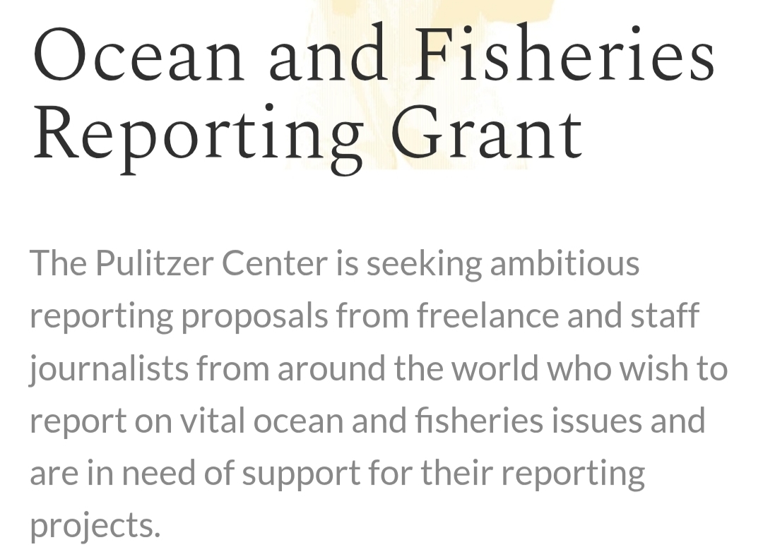 The Pulitzer Centre, a nonprofit organisation that supports independent global journalism, is accepting proposals for its ocean and fisheries reporting grant.