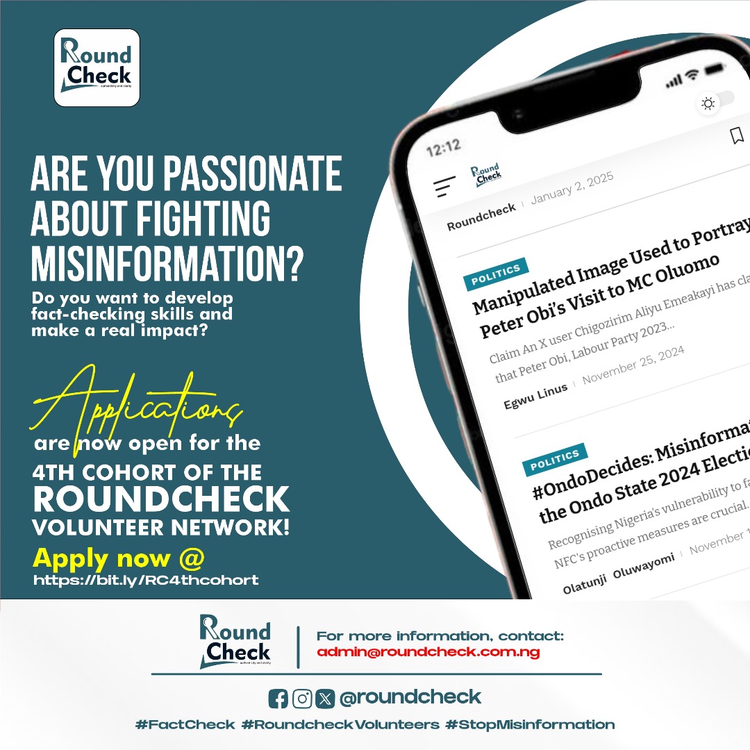 DEADLINE: FEBRUARY 28, 2025 — Roundcheck is accepting applications for the 4th cohort of its Volunteer Network fighting misinformation and disinformation.
