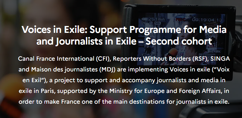 The Voices in ERxile project is implemented by Canal France International (CFI), Reporters Without Borders (RSF), SINGA and Maison des journalistes (MDJ).