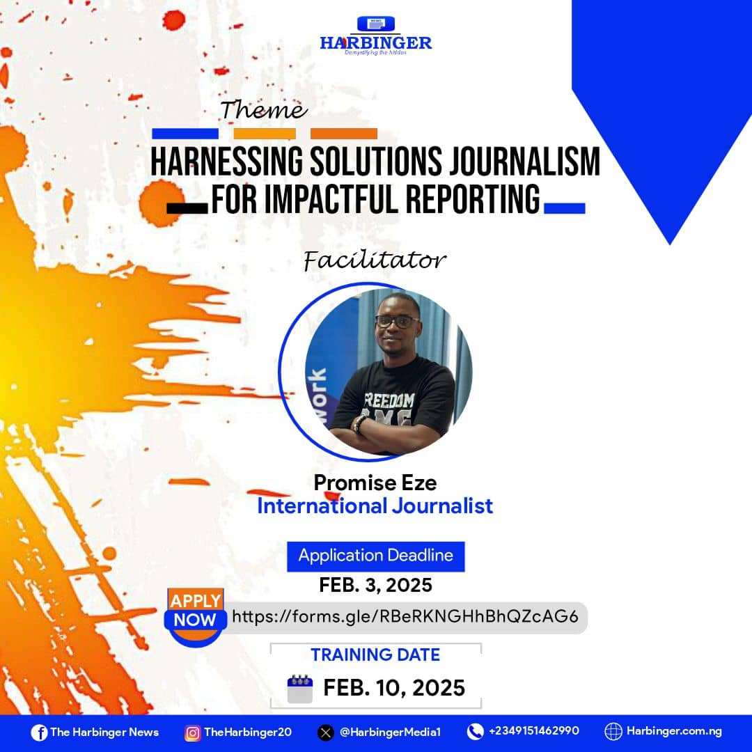 The solutions journalism training, titled “Harnessing Solution Journalism for Impactful Reporting,” will equip journalists with essential skills for impactful and solution-focused reporting.